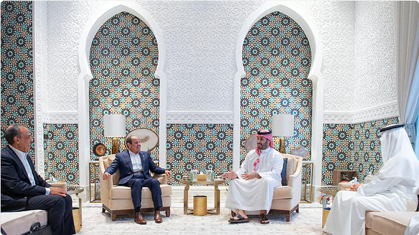 وتأتي زيارة الرئيس المصري عبد الفتاح السيسي إلى المملكة اليوم (الخميس) في هذا السياق، ضمن نهج التشاور الدائم بين الرياض والقاهرة، من أجل تنسيق الأدوار والتوصل إلى حلول عملية لقضايا المنطقة. وتكتسب الزيارة أهمية خاصة في ظل مستجدات الأحداث في قطاع غزة، ورفض البلدين القاطع لقرار الجيش الإسرائيلي احتلال القطاع، إلى جانب إدانة جرائم الحرب والتجويع والتطهير العرقي بحق الشعب الفلسطيني، ودعمهما الثابت لمسار حل الدولتين.