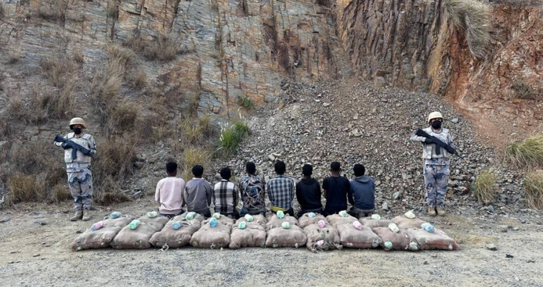 حرس الحدود بجازان يقبض على (8) مخالفين لتهريبهم (360) كيلوجرامًا من القات المخدر