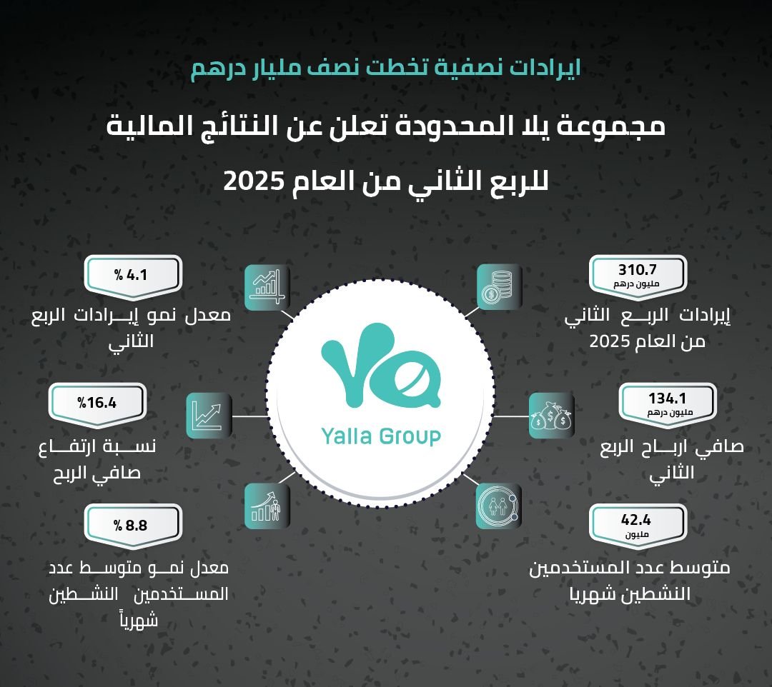 مجوعة يلا المحدودة تعلن عن النتائج المالية للربع الثاني من عام 2025