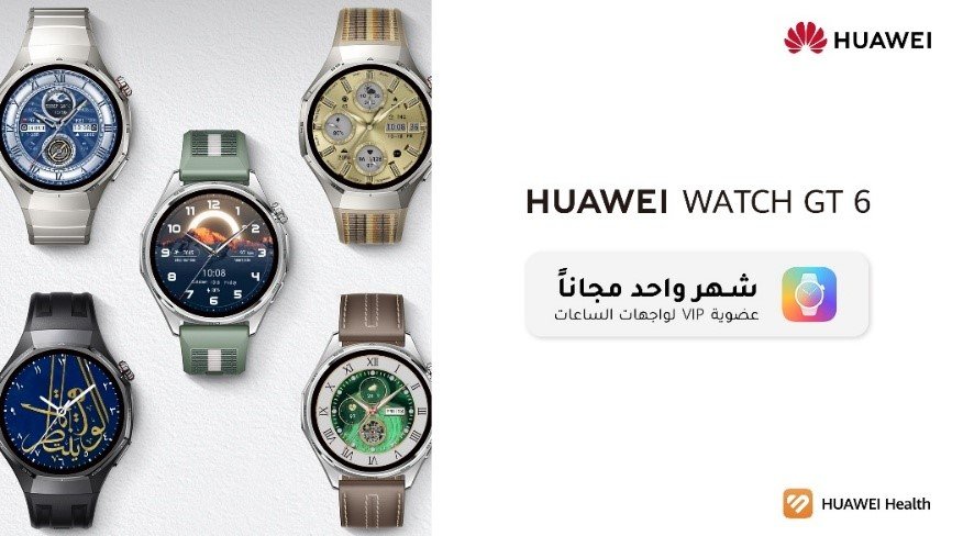 هواوي تحتفل بإطلاق ساعة WATCH GT 6 مع عرض اشتراك VIP الحصري لواجهات الساعة من هواوي مجاناً لمدة شهر واحد
