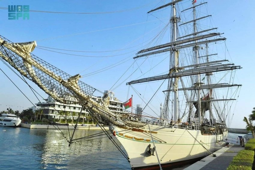 ورست السفينة في نادي جدة لليخوت، وستتواجد يومين في المحطة ما قبل الأخيرة من رحلتها الدولية، قبل عودتها إلى سلطنة عُمان.